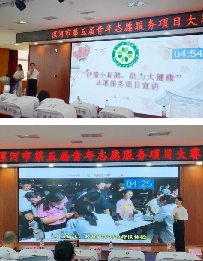 市中醫(yī)院康復(fù)院區(qū)盧鑫、宣傳科朱曉晴、兒童康復(fù)科王雨欣和吳佰珂分別代表三個(gè)志愿服務(wù)隊(duì)參賽,三個(gè)志愿服務(wù)項(xiàng)目以其獨(dú)特的志愿服務(wù)方式以及強(qiáng)大的品牌影響力,獲得評委的高度認(rèn)可,在眾多優(yōu)秀項(xiàng)目中脫穎而出。