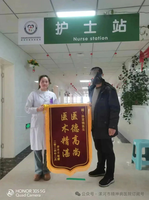 3月4日一大早,一名患者家屬懷著一顆無比感恩的心來到了漯河市精神病醫(yī)院精神四科,感謝我院孫亞南醫(yī)生及全體醫(yī)護人員,并送上一面錦旗,他的患者是一名在校學(xué)生,在家不出門,不與人溝通,緊張、害怕,嚴重影響到日常生活,不能正常上學(xué),經(jīng)門診收住院,入院后,孫醫(yī)生耐心詢問患者的病情,根據(jù)患者的癥狀進行病情評估,制定了詳細的治療方案,通過一個多月的治療,患者癥狀明顯改善。能與人交流了,臉上也露出了久違的笑容。家屬對醫(yī)院的診療和服務(wù)水平非常滿意!