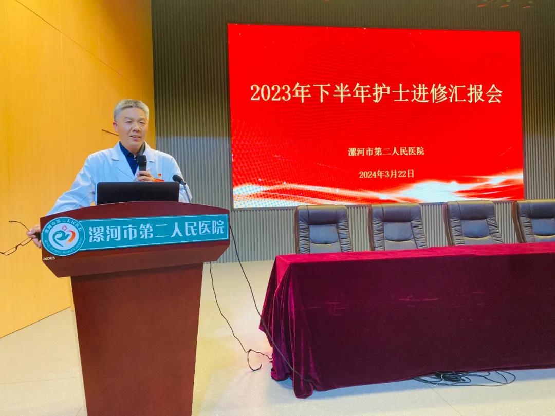 為進(jìn)一步激發(fā)護(hù)理人員學(xué)習(xí)工作積極性,分享學(xué)習(xí)經(jīng)驗,展示工作成效,有效推動護(hù)理??瓢l(fā)展,3月22日,市二院在十二樓學(xué)術(shù)報告廳舉辦了2023年下半年護(hù)士進(jìn)修匯報會。副院長郭長根出席、各科室護(hù)士長、不值班護(hù)士約150人參加了會議。