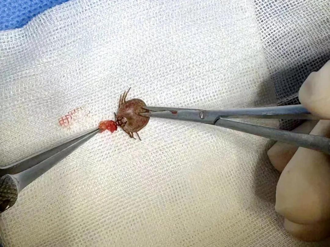 經(jīng)介紹慕名來(lái)到市二院顯微外科,副主任醫(yī)師王占磊詳細(xì)了解病情后,診斷其為蜱蟲叮咬,而且蜱蟲頭部已經(jīng)鉆進(jìn)皮膚。隨后,在顯微鏡下終將蟲子完整取出,經(jīng)細(xì)查蟲子肢體完整,病人滿意而歸。