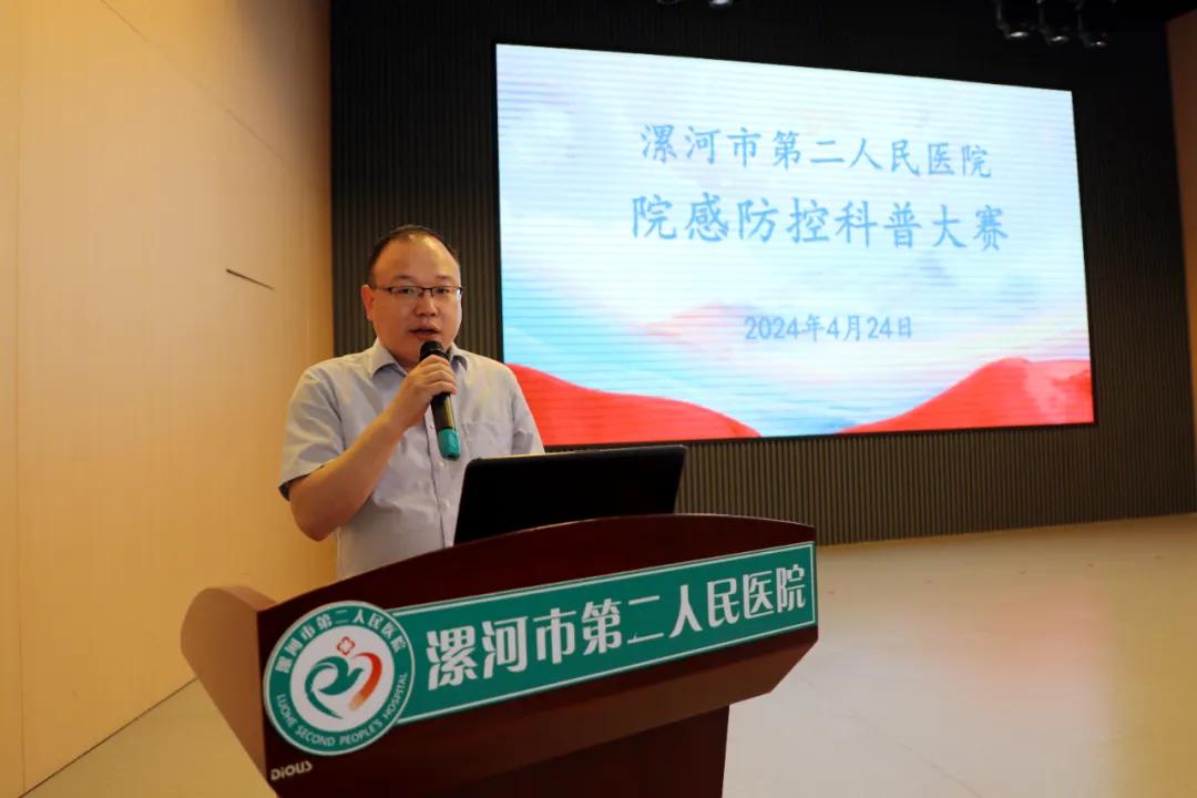 4月24日下午,市二院在12樓學(xué)術(shù)報告廳舉辦“醫(yī)療安全,感控先行”科普大賽,副院長謝彩玲、副院長張曉東、工會主席李世學(xué)及各科室代表200余人參加了活動。