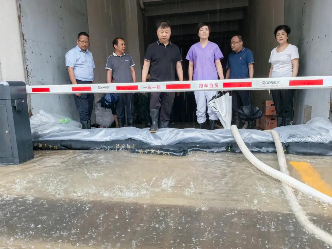 7 月16日,漯河普降暴雨,按照全市統(tǒng)一部署和衛(wèi)健委要求,市二院立即啟動防汛預案和應急響應機制,黨委書記魏松、院長王瑾靠前指揮,帶領班子成員和相關職能科室人員迅速行動,主動關閉地下車庫布置防水擋板和沙袋,同時加固配電房防水沙袋墻,重點點位人員全部上崗包點駐守,確保能夠第一時間發(fā)現(xiàn)問題及時響應堵漏補缺,全力保障醫(yī)院安全穩(wěn)定運行。