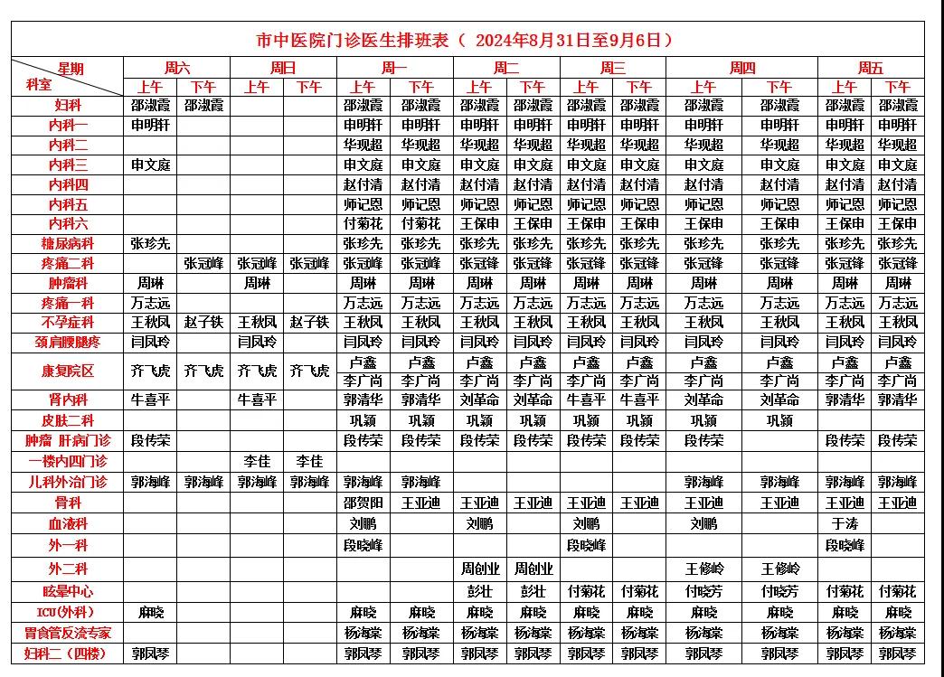 漯河市中醫(yī)院門診醫(yī)生排班表