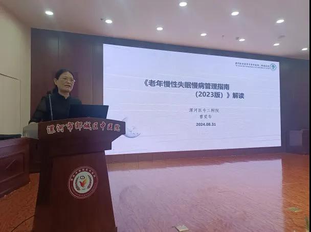 培訓中,曹愛華以《老年慢性失眠慢病管理指南解讀2023》為主題,分別從指南制定背景與目的、睡眠的作用、控制睡眠的解剖結構及生理基礎、老年慢性失眠的診斷、治療到未來發(fā)展趨勢預測及應對建議進行一一闡述。