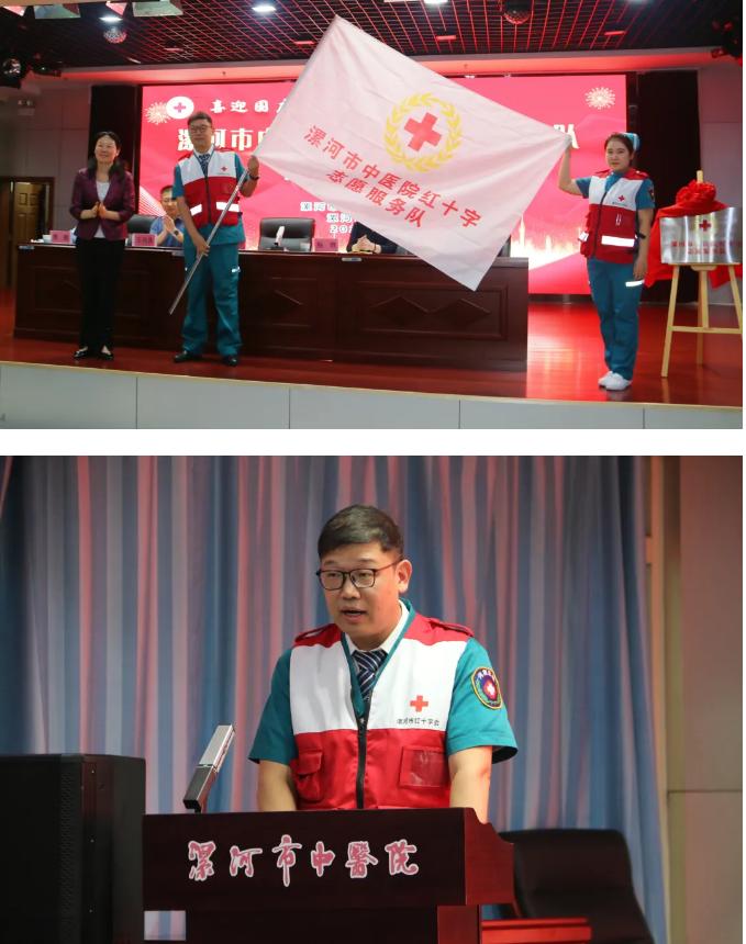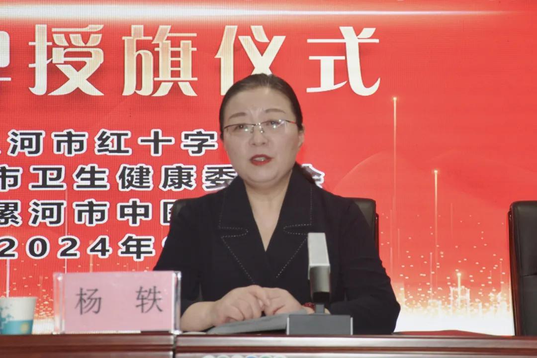 為積極響應(yīng)社會公益號召,弘揚紅十字精神,促進醫(yī)療衛(wèi)生與志愿服務(wù)深度融合,2024年9月25日上午,市紅十字會、市衛(wèi)健委聯(lián)合市中醫(yī)院在醫(yī)院門診四樓學(xué)術(shù)報告廳隆重舉辦“喜迎國慶 志愿同行——漯河市中醫(yī)院紅十字志愿服務(wù)隊揭牌授旗儀式”。市紅十字會黨組書記、常務(wù)副會長孫潁華,市衛(wèi)健委黨組副書記、副主任王向良,市中醫(yī)院黨委書記楊軼,市中醫(yī)院黨委副書記、副院長楚勝,市紅十字會黨組成員、副會長李世杰出席揭牌授旗儀式。各縣區(qū)、功能區(qū)紅十字會負責同志、市直醫(yī)療衛(wèi)生機構(gòu)和漯河醫(yī)專各附屬醫(yī)院分管領(lǐng)導(dǎo)以及市中醫(yī)院志愿者職工代表近200人參加。會議由楚勝主持。