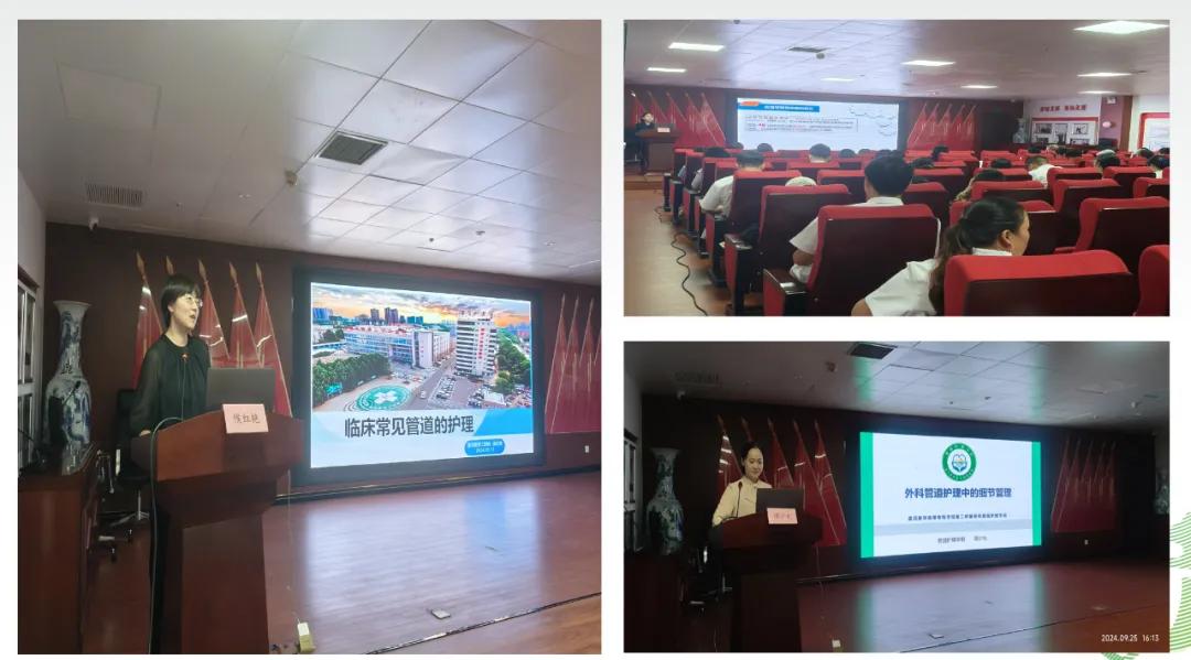 漯河市骨科醫(yī)院管道護(hù)理學(xué)組組長(zhǎng)侯紅艷護(hù)士長(zhǎng)通過(guò)PPT培訓(xùn)的方式對(duì)各類管道的固定方法、固定流程,標(biāo)識(shí)使用進(jìn)行了詳細(xì)的講解,護(hù)士們加深了對(duì)管道規(guī)范固定重要性的認(rèn)識(shí),對(duì)規(guī)范臨床管道護(hù)理工作起到了良好的指導(dǎo)作用。婦產(chǎn)科護(hù)士長(zhǎng)譚少允針對(duì)《外科管道護(hù)理中的細(xì)節(jié)管理》做了詳盡的說(shuō)明??祻?fù)醫(yī)學(xué)科護(hù)士長(zhǎng)田智慧分享了《血管導(dǎo)管相關(guān)感染預(yù)防與控制指南解讀》,預(yù)防血管內(nèi)導(dǎo)管相關(guān)血流感染的原因進(jìn)行分析,并采取相關(guān)舉措后在臨床中獲取的成效和學(xué)員們分享經(jīng)驗(yàn)。