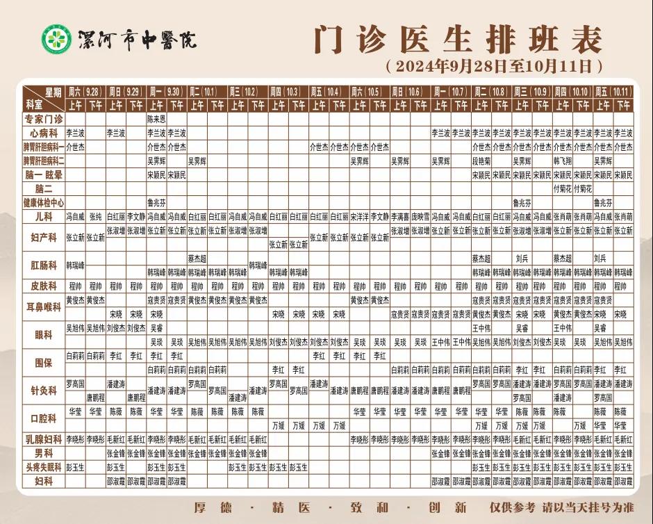 漯河市中醫(yī)院國慶節(jié)期間門診醫(yī)生排班和就醫(yī)指南來啦~