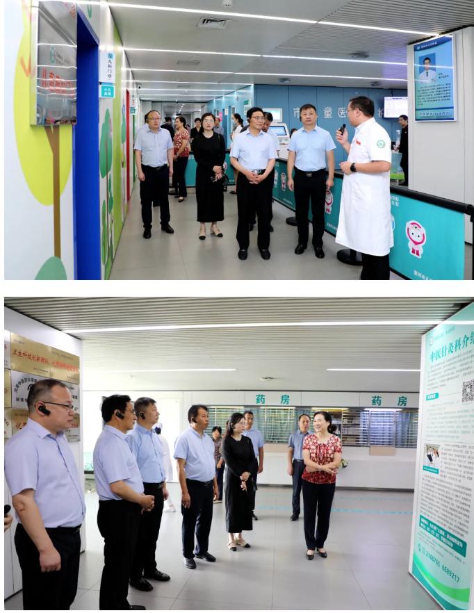 余亞明院長一行在門診大廳聽取了市二院近年來高質(zhì)量發(fā)展情況介紹,并到兒科門診、中醫(yī)針灸科等點位實地參觀。先后聽取了漯河市兒童醫(yī)療中心副主任、市二院小兒呼吸內(nèi)科主任郭先鋒,中醫(yī)針灸科副主任趙劍鋒關(guān)于河南省重點培育學(xué)科兒科和河南省重點中醫(yī)專科中醫(yī)針灸科相關(guān)經(jīng)驗和特色做法的講解。