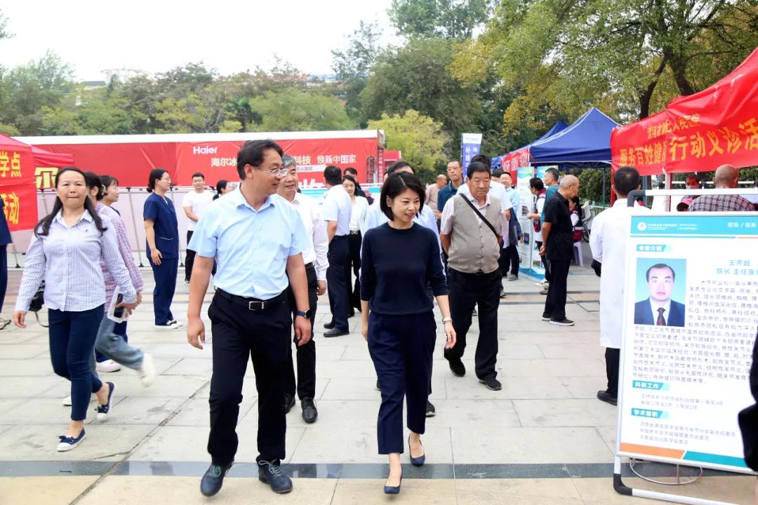 喜迎國慶,健康惠民。9月28日上午,在市衛(wèi)健委的統(tǒng)一組織下,漯河市骨科醫(yī)院(漯河醫(yī)專二附院、漯河市立醫(yī)院)黨委書記柴運洪、院長王齊超、副院長吳廣良帶領(lǐng)由骨科、內(nèi)科、外科、眼科、皮膚科、護理部、社工部共18位醫(yī)療專家組成的志愿者服務(wù)隊,在雙匯廣場開展了“服務(wù)百姓健康行動”集中大型義診活動。