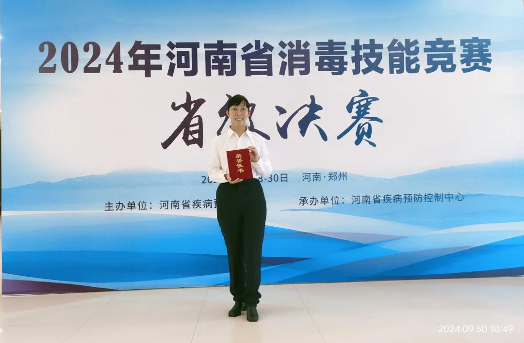 近日,由河南省疾病預(yù)防控制局舉辦的2024年度河南省消毒技能競賽省級決賽圓滿落幕。來自全省18個地市隊、20個省直醫(yī)療機構(gòu)隊共計94名選手同臺競技,經(jīng)過激烈角逐,漯河市中醫(yī)院感染辦王紅紅榮獲個人三等獎。