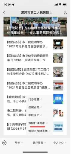 2.可以關注漯河市第二人民醫(yī)院微信公眾號,進入公眾號頁面。