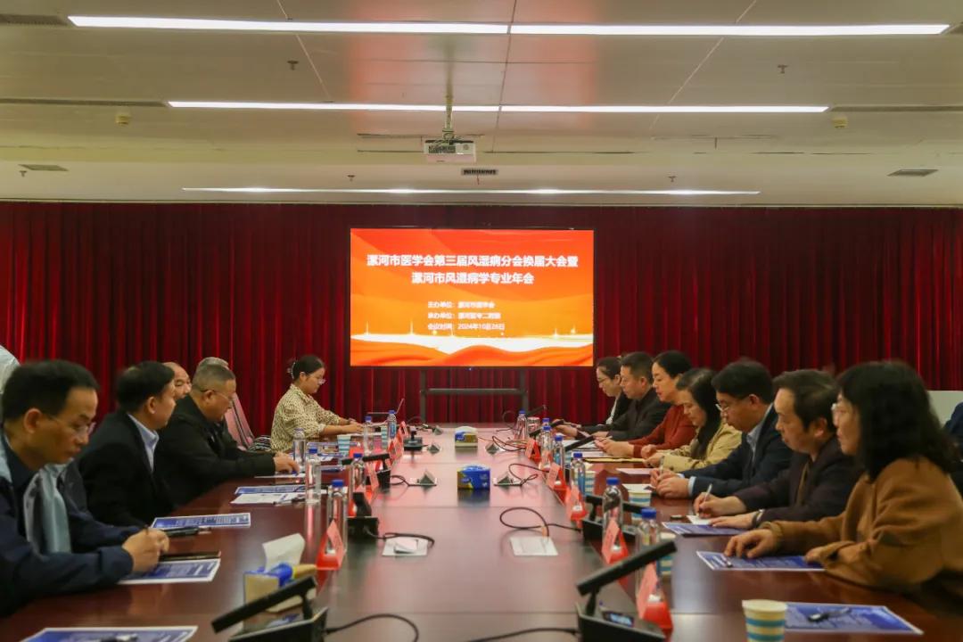 為搭建風(fēng)濕病學(xué)術(shù)交流平臺,提升風(fēng)濕病診治水平,更好地保障人民群眾健康,10月26日,由漯河市醫(yī)學(xué)會主辦、漯河市骨科醫(yī)院(漯河醫(yī)專二附院、漯河市立醫(yī)院)承辦的漯河市第三屆風(fēng)濕病學(xué)專業(yè)委員會換屆暨2024年漯河市風(fēng)濕病學(xué)專業(yè)年會召開。漯河市衛(wèi)健委三級調(diào)研員王新慧、市醫(yī)學(xué)會花云秘書長、漯河市骨科醫(yī)院黨委書記柴運(yùn)洪、紀(jì)委書記劉國鋒等出席。會上,我院劉國鋒當(dāng)選為主任委員,李變鋒當(dāng)選為副主任委員,程苗當(dāng)選為常務(wù)委員兼學(xué)會秘書。會上頒發(fā)了委員證,全體委員合影留念。