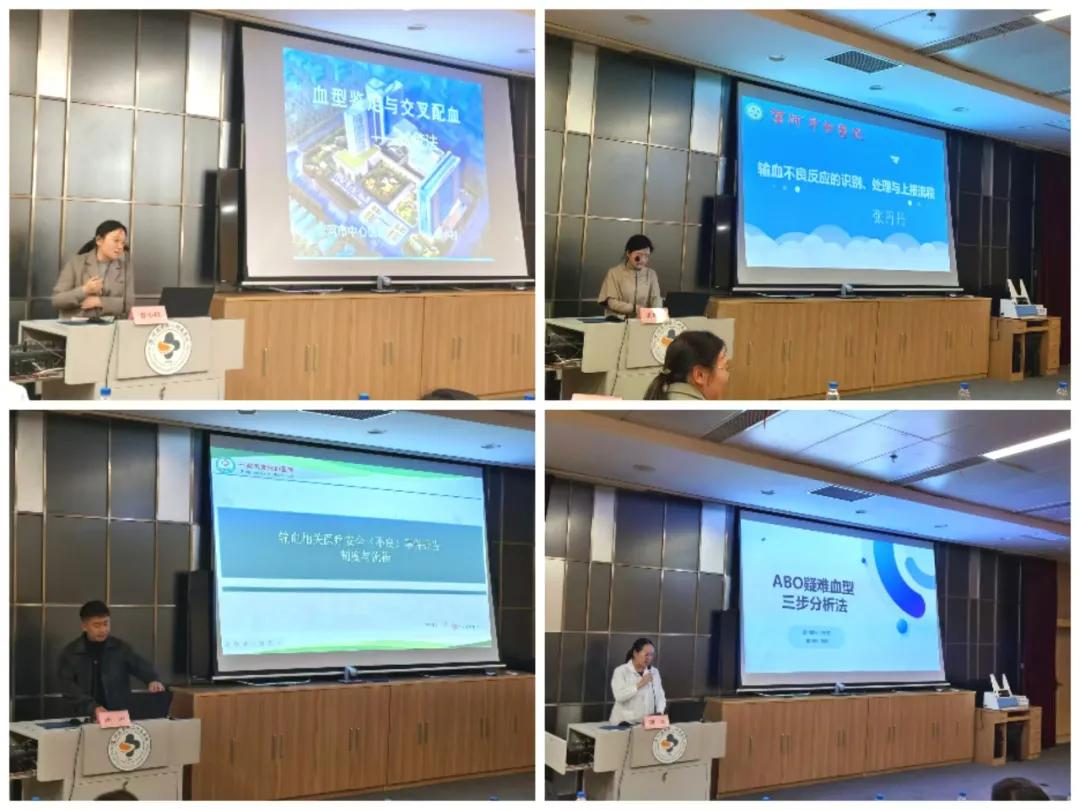 第二部分是專題培訓(xùn)會,首先由漯河市中心醫(yī)院賈小村老師為大家分享了《血型鑒定與交叉配血》,其次,由漯河市中醫(yī)院張丹丹老師為大家?guī)怼遁斞涣挤磻?yīng)的識別、處理與上報》,緊接著,臨潁縣人民醫(yī)院陳陽主任給大家匯報了《輸血相關(guān)不良事件的報告》,最后,漯河醫(yī)專二附院劉歡老師給大家?guī)砹恕禔BO疑難血型三步分析法》。這些老師從實際工作出發(fā),具體分析了輸血工作中可能遇到的問題及注意事項,無私分享了寶貴的工作經(jīng)驗,會議在掌聲中圓滿結(jié)束。