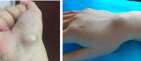 腱鞘囊腫的病因是長期炎癥刺激、慢性勞損導(dǎo)致關(guān)節(jié)囊、韌帶、腱鞘中的結(jié)締組織發(fā)生退行性粘液性變性,從而形成囊性腫物?;颊叨酁榍鄩涯?,女性更多見。腱鞘囊腫常呈半球形,隆起于皮下,生長緩慢,大小不一,一般不超過2cm,偶爾也可達(dá)8cm。囊腫大小與癥狀輕重?zé)o直接關(guān)系,而與囊腫張力有關(guān),張力越大,腫物越硬,疼痛越明顯。