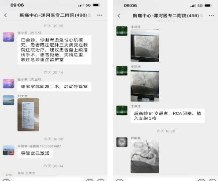 病區(qū)內(nèi),當(dāng)清晨的第一縷陽光穿透云層,心內(nèi)一科的醫(yī)護(hù)人員已是整裝待發(fā),準(zhǔn)備迎接新一天的挑戰(zhàn)。然而,這天的挑戰(zhàn)卻來得尤為“迅猛”。5時(shí)44分,醫(yī)院胸痛中心群內(nèi),張小莉醫(yī)生發(fā)送了“患者急性心肌梗死,家屬同意手術(shù),啟動(dòng)導(dǎo)管室”的訊息,陳建忠主任及介入團(tuán)隊(duì)便在介入手術(shù)室的緊密配合下,迅速開始了心肌梗死患者的救治之旅;15時(shí)38分,李洪浩醫(yī)生發(fā)送“患者急性心肌梗死,啟動(dòng)導(dǎo)管室”的訊息,16時(shí)50分,陳建忠主任再次啟動(dòng)了導(dǎo)管室......一天之內(nèi),心內(nèi)一科醫(yī)護(hù)團(tuán)隊(duì)連續(xù)搶救了8名心梗患者!
