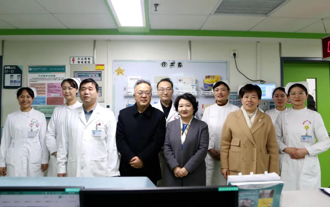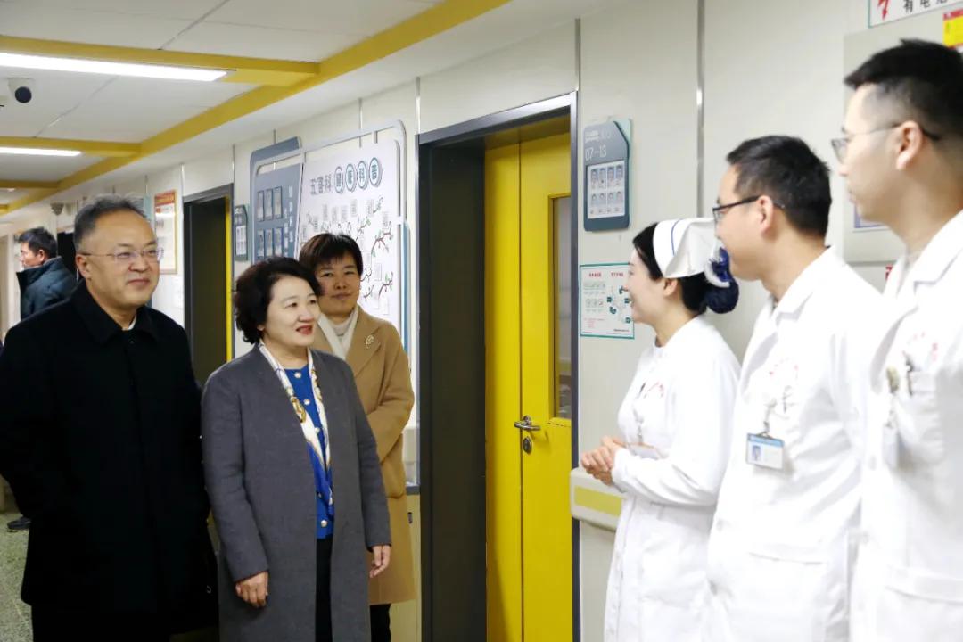 隨后張祎捷一行來到住院病區(qū),對(duì)醫(yī)院取得的成績給予了充分肯定,鼓勵(lì)大家在新的一年里繼續(xù)努力,不斷提高醫(yī)療技術(shù)水平,為患者提供更加優(yōu)質(zhì)的醫(yī)療服務(wù)。同時(shí),領(lǐng)導(dǎo)們還關(guān)心地詢問了醫(yī)護(hù)人員的工作和生活情況,希望他們?cè)诠ぷ髦嗄軌蛘疹櫤米约汉图胰?,并送上?jié)日的慰問品。