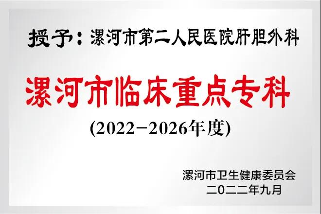 漯河市第二人民醫(yī)院普外科含肝膽外科、燒傷科、泌尿外科、微創(chuàng)外科、普外科。其中肝膽外科為漯河市醫(yī)學重點專科,擁有普通病床46張,重癥監(jiān)護病床5張,該科技術力量雄厚,現(xiàn)有主任醫(yī)師3人,副主任醫(yī)師2人,住院醫(yī)師3人,副主任護師1人,其中碩士研究生2名。科室先后榮獲河南省衛(wèi)生廳科技成果獎4項,漯河市科技成果獎30余項,其中一等獎8項。分別和火箭軍總醫(yī)院、上海東方肝膽外科醫(yī)院、河南省人民醫(yī)院肝膽外科等建立診療聯(lián)盟單位,定期邀請知名專家來院義診及手術,能為漯河市及周邊地區(qū)的病人提供優(yōu)質的醫(yī)療服務。