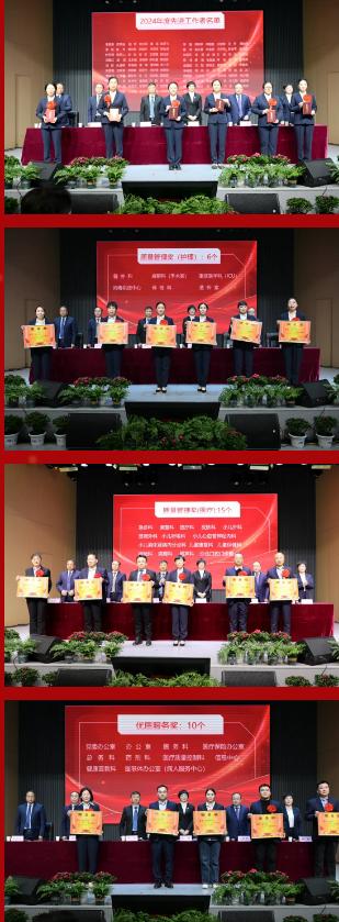 大會對2024年表現(xiàn)優(yōu)秀的集體和個人進行了隆重表彰,依次頒發(fā)了“年度工作先進工作者”“護理質(zhì)量管理獎”“醫(yī)療質(zhì)量管理獎”“優(yōu)質(zhì)服務(wù)獎”“目標管理先進科室”和“特殊貢獻獎”。獲獎代表們臉上洋溢著自豪的笑容依次上臺領(lǐng)獎,臺下的陣陣掌聲,更是獻給榜樣的最高禮贊。