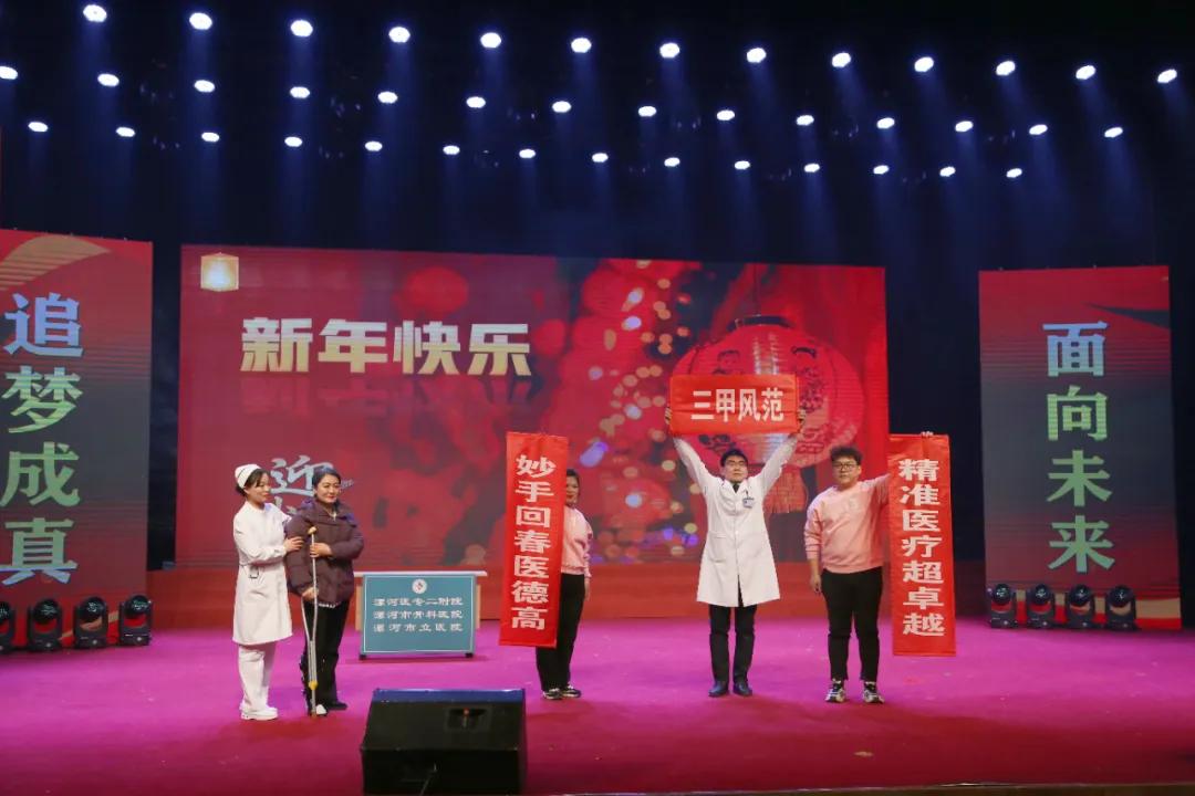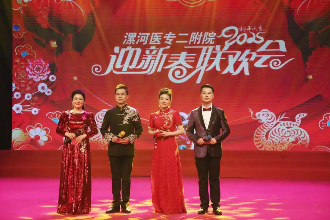 為慶祝漯河醫(yī)專二附院(漯河市骨科醫(yī)院、漯河市立醫(yī)院)建院七十五周年,1月21日,漯河醫(yī)專二附院2025年迎新春聯(lián)歡會(huì)在漯河市科教文化藝術(shù)中心大劇院隆重舉行。漯河醫(yī)學(xué)高等??茖W(xué)校校長(zhǎng)張祎捷,市衛(wèi)生健康委副主任于宏,市醫(yī)保局副局長(zhǎng)于懷江,漯河醫(yī)專黨委副書記邊曉峰,市科協(xié)副主席臧明濤,市總工會(huì)四級(jí)調(diào)研員李敏,漯河醫(yī)專紀(jì)委書記王蕾,漯河醫(yī)專副校長(zhǎng)張福華、馬永超,漯河醫(yī)專二附院黨委書記柴運(yùn)洪,漯河醫(yī)專二附院院長(zhǎng)王齊超,漯河醫(yī)專黨辦主任楊曉宇,漯河醫(yī)專行政辦主任申耀強(qiáng),漯河醫(yī)專團(tuán)委書記周沛,市衛(wèi)健委醫(yī)政科科長(zhǎng)胡艷麗,市總工會(huì)文教衛(wèi)工會(huì)主任谷賀衛(wèi),郾城區(qū)龍塔街道辦事處主任李瑩,郾城區(qū)巴山路居委會(huì)書記王梅芝,郾城區(qū)伊坪小學(xué)校長(zhǎng)徐偉濤等出席。