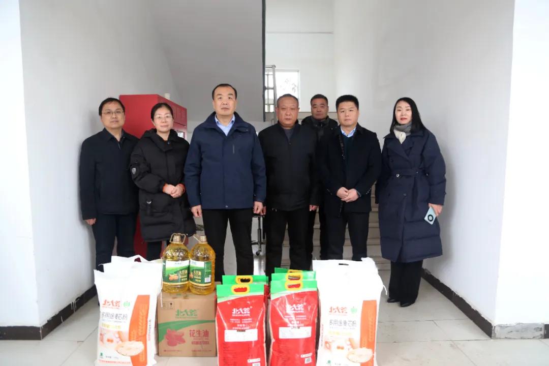 在郾城區(qū)淞江街道小趙村,院黨委書記柴運洪、院長王齊超一行將米、面、油等慰問品送到困難群眾家中,為村民們送來新春的問候。柴書記、王院長詳細了解他們的家庭收入、子女教育等情況,并鼓勵他們保持積極心態(tài),注意保重身體,早日走出困境。