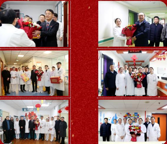 1月29日正值乙巳蛇年大年初一,漯河醫(yī)專二附院(漯河市骨科醫(yī)院、漯河市立醫(yī)院)黨委書記柴運洪、院長王齊超及院領(lǐng)導(dǎo)吳廣良、曹鵬克、鄭建新、劉國鋒、吳威等分別帶領(lǐng)各職能科室負責人深入各病區(qū)、各科室、陰陽趙分院等處看望慰問節(jié)日期間依然堅守崗位的廣大干部職工,為每一位堅守崗位的醫(yī)護人員和工作人員送上新春的美好祝福與誠摯的慰問。