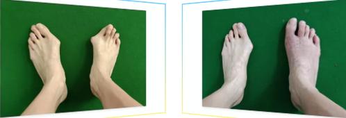 患者今年39歲,10年前發(fā)現(xiàn)雙足踇趾向外偏,1年前自覺畸形加重,活動(dòng)后關(guān)節(jié)紅腫疼痛明顯,休息后緩解,活動(dòng)后再次加重,病情反復(fù)并逐漸加重。