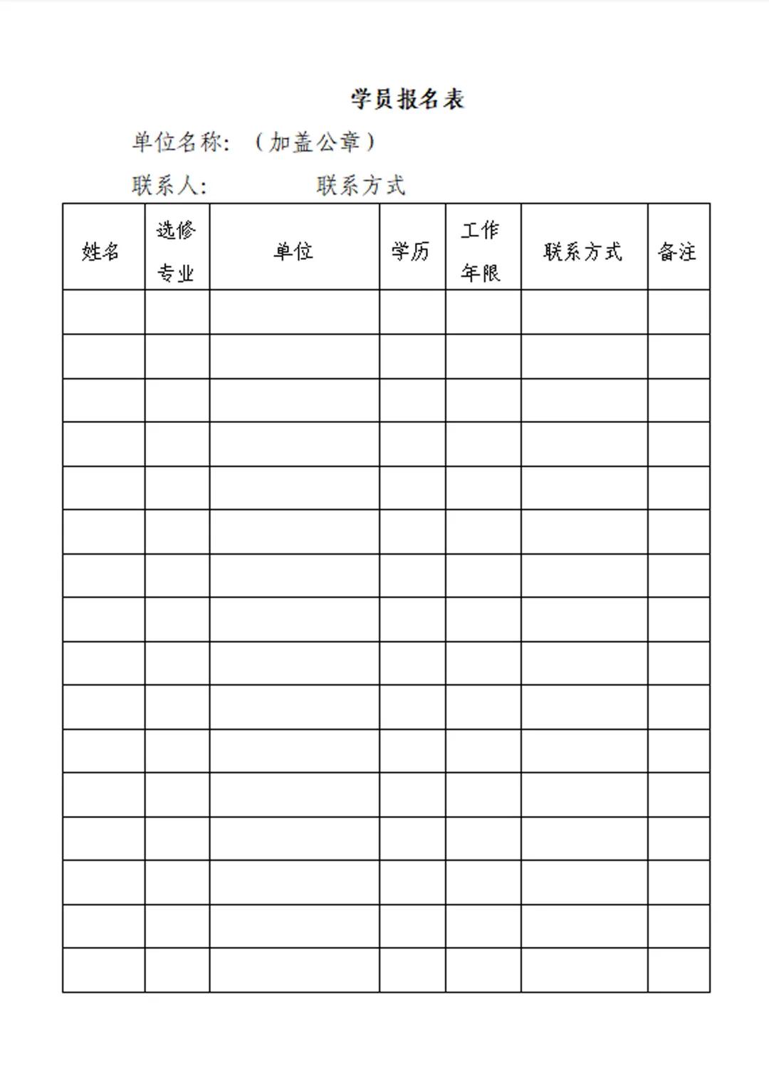 附:學員報名表(供單位統(tǒng)一報名用)
