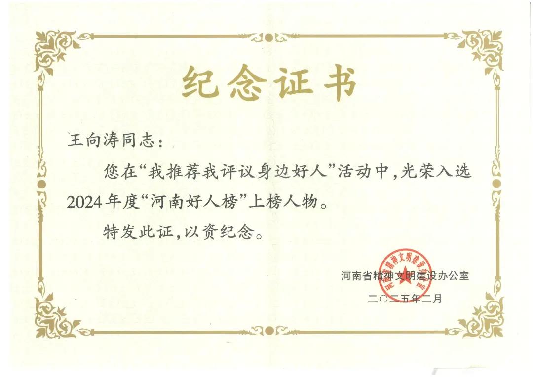 2月25日晚,“我們河南人”—河南省道德模范、河南好人、新時代好少年先進事跡頒獎活動在河南廣播電視臺舉行。漯河市中醫(yī)院功能檢查科主任王向濤光榮獲得2024年度“河南好人”榮譽稱號。