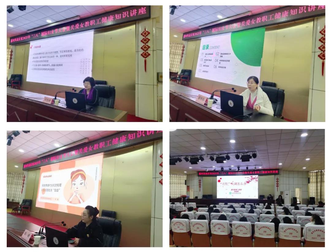 授課現(xiàn)場,婦產(chǎn)科何宏舸主任、心內(nèi)二董艷彩主任、皮膚科陳敏副主任三位專家分別就《“月經(jīng)”失調怎么辦》《心血管疾病健康科普-預防、急救與管理》《探索青春時光機的秘密和色斑皺紋說“白白”》進行精彩分享。授課過程中,三位專家通過理論講解、案例分析和互動交流相結合的方式,向女教職工們詳細講解了常見婦科疾病的早期發(fā)現(xiàn)及治療方法,以及如何在平時生活中預防心血管疾病的發(fā)生,對如何合理搭配營養(yǎng)知識方面得到了提升,最后,以如何預防皮膚衰老及改善方法,針對不同膚質提供了個性化的護理建議。