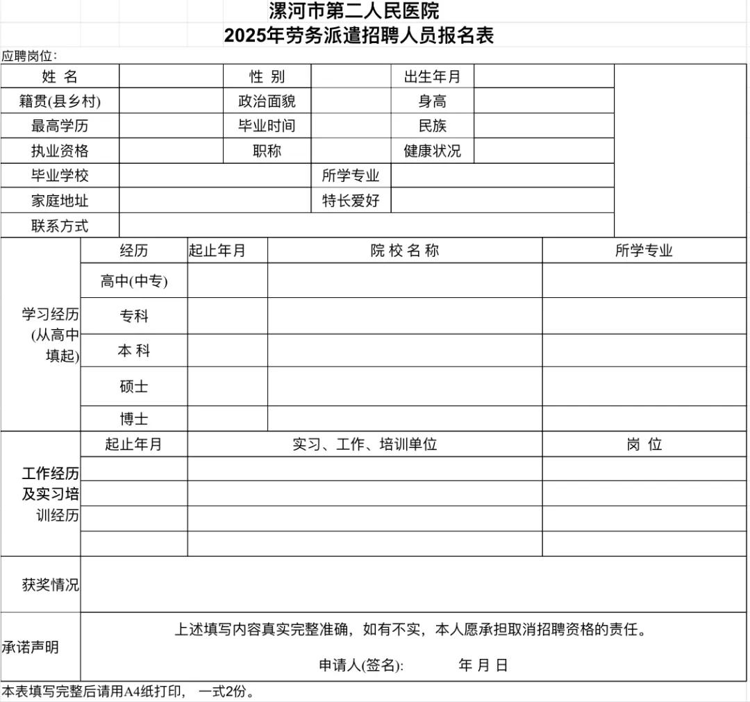 請(qǐng)符合條件的人員攜帶本人報(bào)名所需材料:報(bào)名表;有效身份證;畢業(yè)證、學(xué)位證;專(zhuān)業(yè)資格證書(shū)等原件及復(fù)印件,前往漯河市第二人民醫(yī)院2號(hào)樓(門(mén)診樓)11樓人事科(1103房間)進(jìn)行報(bào)名。
