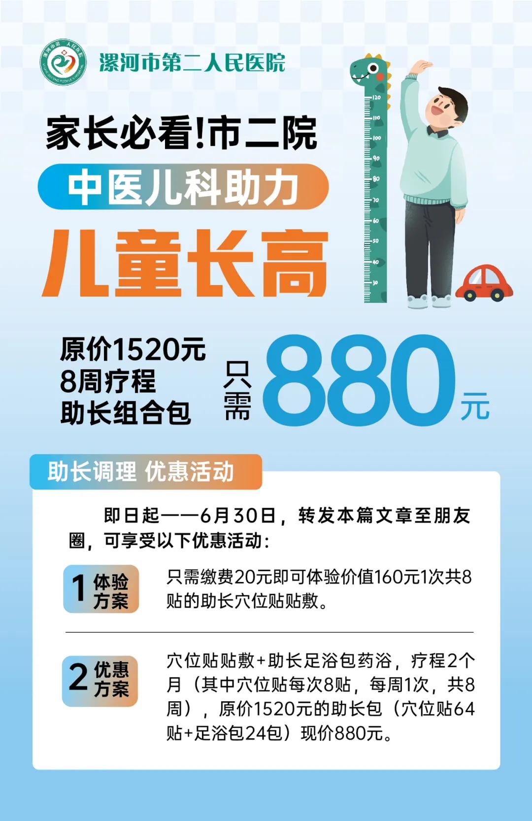 即日起,中醫(yī)兒科、兒童保健科特推出“兒童生長(zhǎng)發(fā)育評(píng)估及身高助長(zhǎng)”惠民活動(dòng),有需要的家長(zhǎng),趕快約起來(lái)!