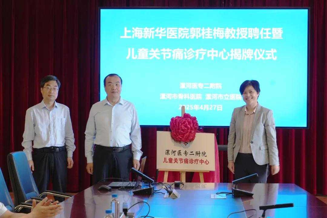 4月27日,漯河醫(yī)專二附院(漯河市骨科醫(yī)院、漯河市立醫(yī)院)舉行上海交通大學(xué)附屬新華醫(yī)院郭桂梅教授聘任暨成立“兒童關(guān)節(jié)痛診療中心”揭牌儀式。黨委書記柴運洪、院長王齊超,副院長吳廣良、鄭建新,紀(jì)委書記劉國鋒出席,兒科、小兒骨科、風(fēng)濕免疫科和康復(fù)科等科室人員參加會議。