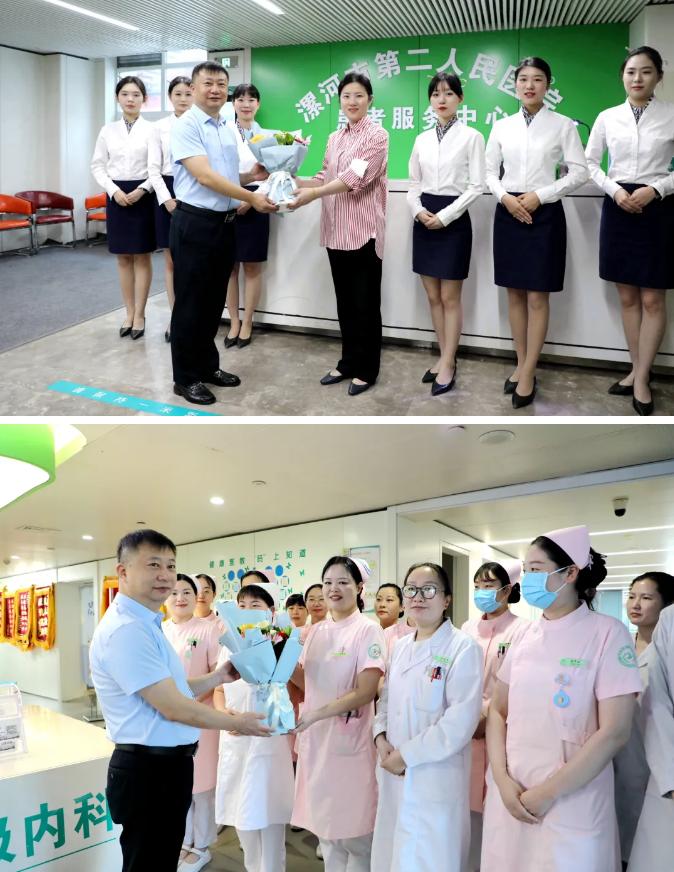 關(guān)愛(ài)護(hù)士隊(duì)伍,守護(hù)人民健康。5月12日上午,為慶祝第114個(gè)“5·12”國(guó)際護(hù)士節(jié),市二院黨委書(shū)記魏松,黨委副書(shū)記、院長(zhǎng)胡海英攜院班子成員及相關(guān)職能科室負(fù)責(zé)人深入臨床一線(xiàn)開(kāi)展節(jié)日慰問(wèn)活動(dòng),向全院護(hù)理工作者送去鮮花,并致以節(jié)日的祝福和誠(chéng)摯的問(wèn)候。