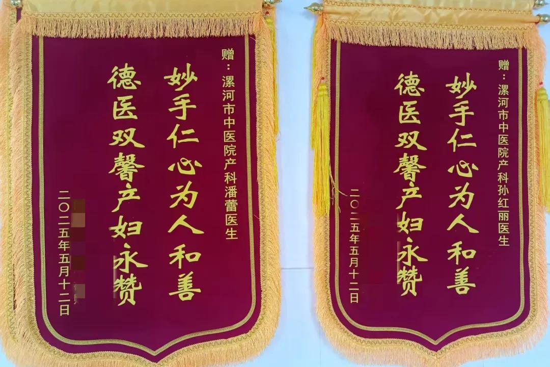 患者及家屬對婦產(chǎn)科團隊醫(yī)療技術(shù)及應(yīng)急處理非常滿意,在康復(fù)出院后,送來兩面錦旗,上面寫著“妙手仁心為人和善,德醫(yī)雙馨產(chǎn)婦永贊”的字樣,飽含著對婦產(chǎn)科醫(yī)生及護理團隊的感激之情,也是對科室工作的認(rèn)可。