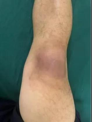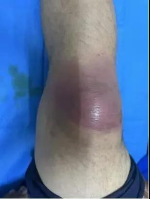 患者,以“外傷致右膝紅腫、疼痛20余天”為主訴就診,20余天前,因騎電車摔傷右膝關(guān)節(jié),致使出現(xiàn)右膝腫脹、疼痛、活動(dòng)受限,在當(dāng)?shù)蒯t(yī)院給予消腫、止痛治療效果差,繼而出現(xiàn)膝關(guān)節(jié)紅腫熱痛癥狀,門(mén)診給予滑膜炎片及消腫止痛藥物治療癥狀未見(jiàn)好轉(zhuǎn),慕名前來(lái)我院手顯微外科住院。入院當(dāng)天即給予中藥外敷(骨炎膏),穿刺膿性分泌物送細(xì)菌培養(yǎng),給予廣譜抗生素治療(細(xì)菌培養(yǎng)未出)。