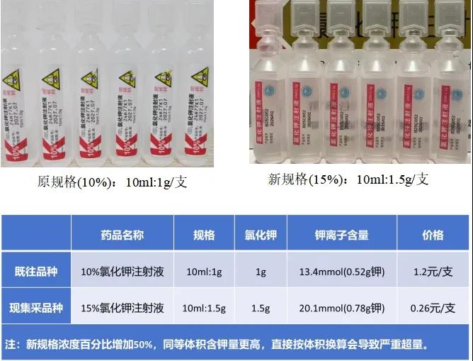 新規(guī)格風(fēng)險(xiǎn)點(diǎn):15%氯化鉀每支含鉀20.1mmol,需嚴(yán)格計(jì)算溶媒中最大加入量;