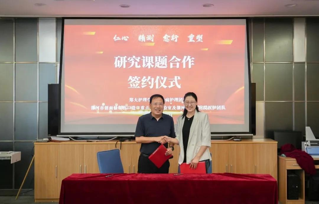 護(hù)理部趙春紅主任為本次公益活動致辭,她表示,漯河醫(yī)專二附院培養(yǎng)了漯河首位國際淋巴水腫治療師成瀚,并成功舉辦多次國家級慢性水腫與創(chuàng)面治療師培訓(xùn)班,為醫(yī)院培養(yǎng)出15名治療師,于全國而言培養(yǎng)出了近百名治療師。2023年,在國際傷口、國際淋巴水腫治療師成瀚與漯河醫(yī)專二附院審計科的聯(lián)合推動下,手法引流治療費用成功納入全市醫(yī)保收費系統(tǒng),為患者減輕了醫(yī)療經(jīng)濟(jì)負(fù)擔(dān)。今天的簽約將打通“高??蒲?實驗室技術(shù)-臨床研究”通路,為患者康復(fù)提供更精準(zhǔn)、更可及的方案。