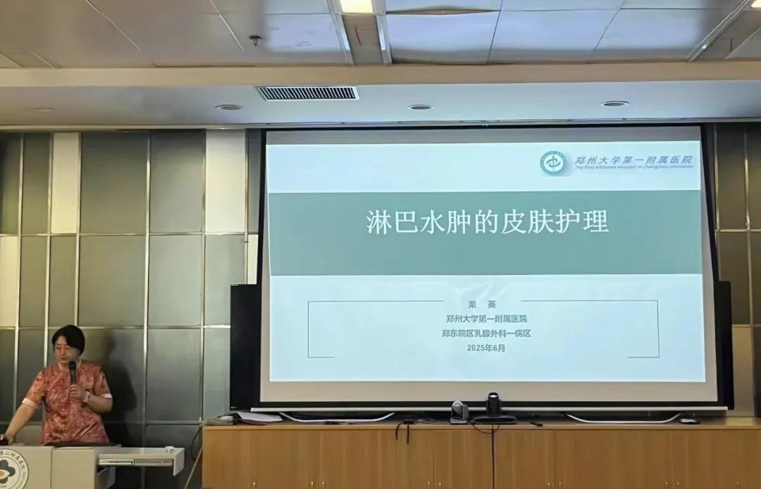 鄭大一附院乳腺外科栗英護(hù)士長現(xiàn)場演示《淋巴水腫皮膚護(hù)理黃金法則》“患肢防曬防蚊蟲、壓力袖套穿戴3要點、傷口應(yīng)急處理口訣”,患者認(rèn)真學(xué)習(xí)記錄實用居家護(hù)理方法。