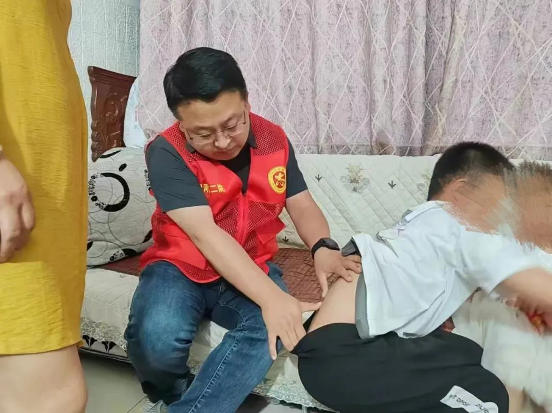 近日,市二院放療科團隊再次來到小匯攏家中回訪。醫(yī)務(wù)人員仔細檢查了他的身體恢復情況,并叮囑日常注意事項??粗⒆踊畋膩y跳的樣子,誰也想不到,這個陽光少年曾因腫瘤壓迫脊髓而瀕臨絕境。