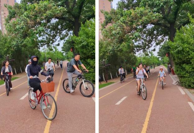 本次活動(dòng)以“喜迎七一”為主題,將愛(ài)黨愛(ài)國(guó)教育、團(tuán)隊(duì)建設(shè)與健康運(yùn)動(dòng)有機(jī)結(jié)合。青年朋友們精神飽滿地踏上單車(chē),沿著精心規(guī)劃的騎行路線出發(fā)。騎行隊(duì)伍宛如一條流動(dòng)的青春彩帶,穿梭于沙澧河畔的綠樹(shù)碧水之間。大家一路歡聲笑語(yǔ),洋溢著青春的活力與朝氣,以實(shí)際行動(dòng)踐行低碳環(huán)保理念,成為景區(qū)一道亮麗的風(fēng)景線。