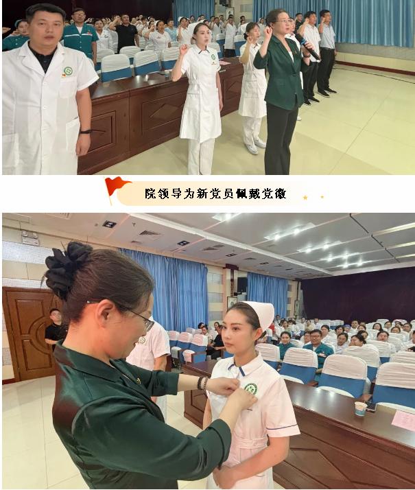 百年篳路藍縷,百年風(fēng)雨兼程?;顒右潦?,由醫(yī)院黨委班子為新黨員佩戴黨徽,以“一枚黨徽”凝聚紅色力量,以“雙重身份”踐行醫(yī)者初心;全體黨員在院黨委書記、院長楊軼的領(lǐng)誓下重溫入黨誓詞,鏗鏘誓言重溫入黨初心,醫(yī)心向黨堅定奮進信念。