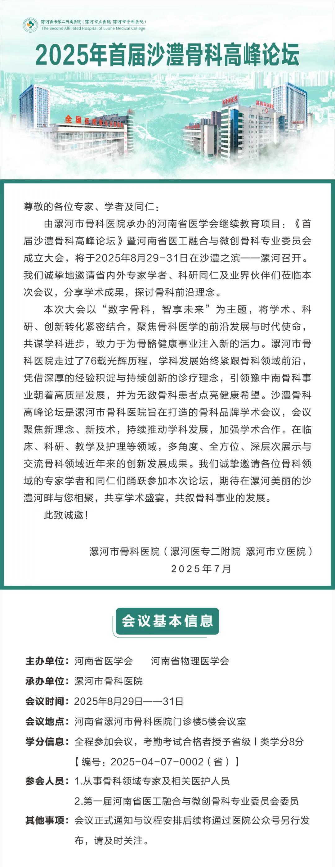 會議預(yù)告 | 2025年首屆沙澧骨科高峰論壇召開在即