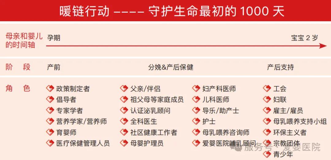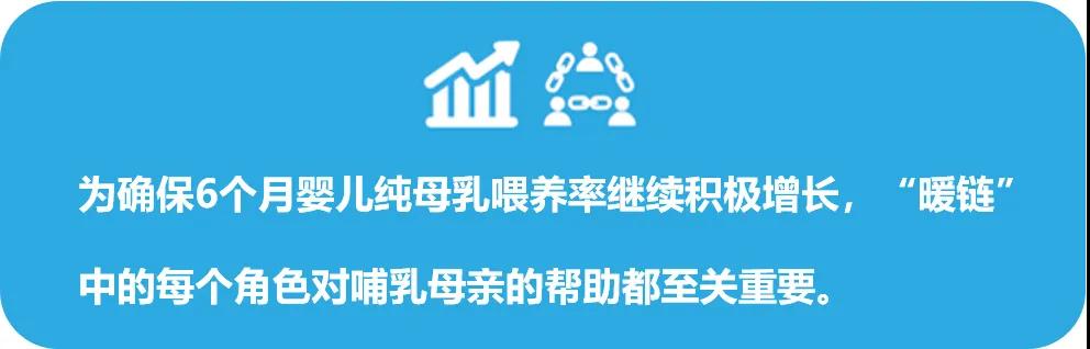 “暖鏈”行動(dòng)是一項(xiàng)保護(hù)、促進(jìn)和支持母乳喂養(yǎng)的全球性行動(dòng),倡導(dǎo)以母親和嬰兒為核心,遵循生命最初1000天的時(shí)間軸,所有支持母乳喂養(yǎng)的醫(yī)務(wù)人員及社會(huì)各界,都是暖鏈中的一環(huán),通過各環(huán)節(jié)之間的協(xié)作,為母嬰家庭傳遞一致的信息并提供支持措施,幫助母親和嬰兒獲得持續(xù)的、滿意的、有效的母乳喂養(yǎng)體驗(yàn)。