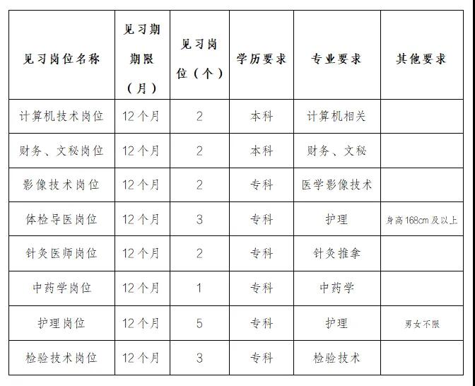 根據(jù)《河南省就業(yè)見習(xí)管理暫行辦法》及相關(guān)文件精神,結(jié)合漯河市中醫(yī)院實(shí)際需求,招收見習(xí)人員若干?,F(xiàn)將有關(guān)事宜公告如下:
