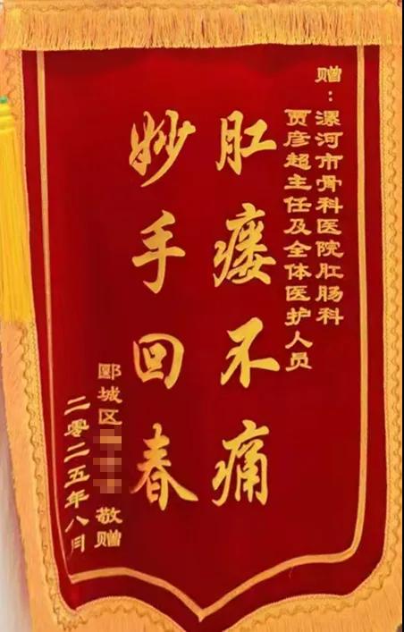 近日,在漯河醫(yī)專二附院(漯河市骨科醫(yī)院、漯河市立醫(yī)院)肛腸科,患者將一面寫有“肛瘺不痛,妙手回春”的錦旗送到了賈彥超主任手中,以此表達她對賈主任及其醫(yī)療團隊精湛醫(yī)術(shù)和貼心關(guān)懷的誠摯感謝。這面錦旗背后,是一段患者重獲健康、擺脫病痛折磨的暖心歷程。