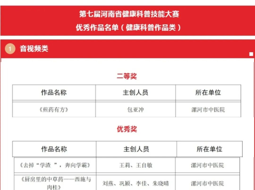獎(jiǎng)獎(jiǎng)獎(jiǎng)來(lái)了——漯河市中醫(yī)院在第七屆河南省健康科普技能大賽中斬獲佳績(jī)