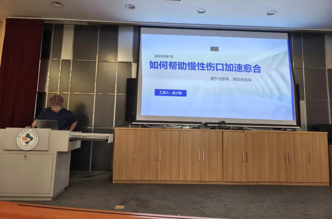 隨后,壓力性損傷/傷口護理學組學術(shù)調(diào)研組長趙小艷老師圍繞《如何幫助慢性傷口加速愈合》展開授課。她深入探討慢性傷口愈合延遲的常見誘因,如局部血運、感染、營養(yǎng)不良等,進而系統(tǒng)闡述了個性化護理方案制定、傷口清創(chuàng)技巧、感染防控要點,以及通過優(yōu)化局部環(huán)境、結(jié)合物理治療等促進愈合的實用手段。豐富的內(nèi)容和實用的方法,為護理人員應對慢性傷口難題提供了清晰思路與有效策略。