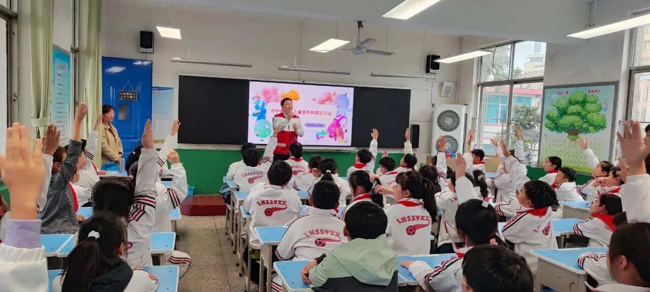 講座結(jié)束后,王戰(zhàn)磊又化身為孩子們的“安全知識大考官”,深入班級進行現(xiàn)場演示、講解和現(xiàn)場提問,并為每一位勇敢舉手回答的孩子,都送上了一份小紀念品。“之前聽說有同學被熱水燙到涂抹牙膏,原來這是錯誤的!如果遇到這種情況,我知道該怎么做了!”同學們的自救互救能力得到了有效提升。