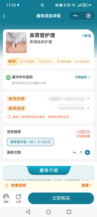 3、選擇項目規(guī)格,填寫“服務(wù)對象”信息與“服務(wù)地址”(首次使用需實名認(rèn)證)