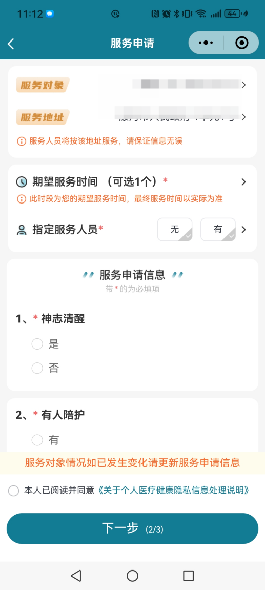 4、選擇預(yù)約時間,填寫服務(wù)申請信息
